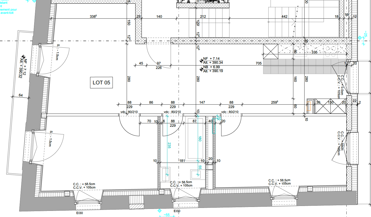 La salle de bains ou douche (selon logement) est d’une superficie d’environ 5,5 m2.