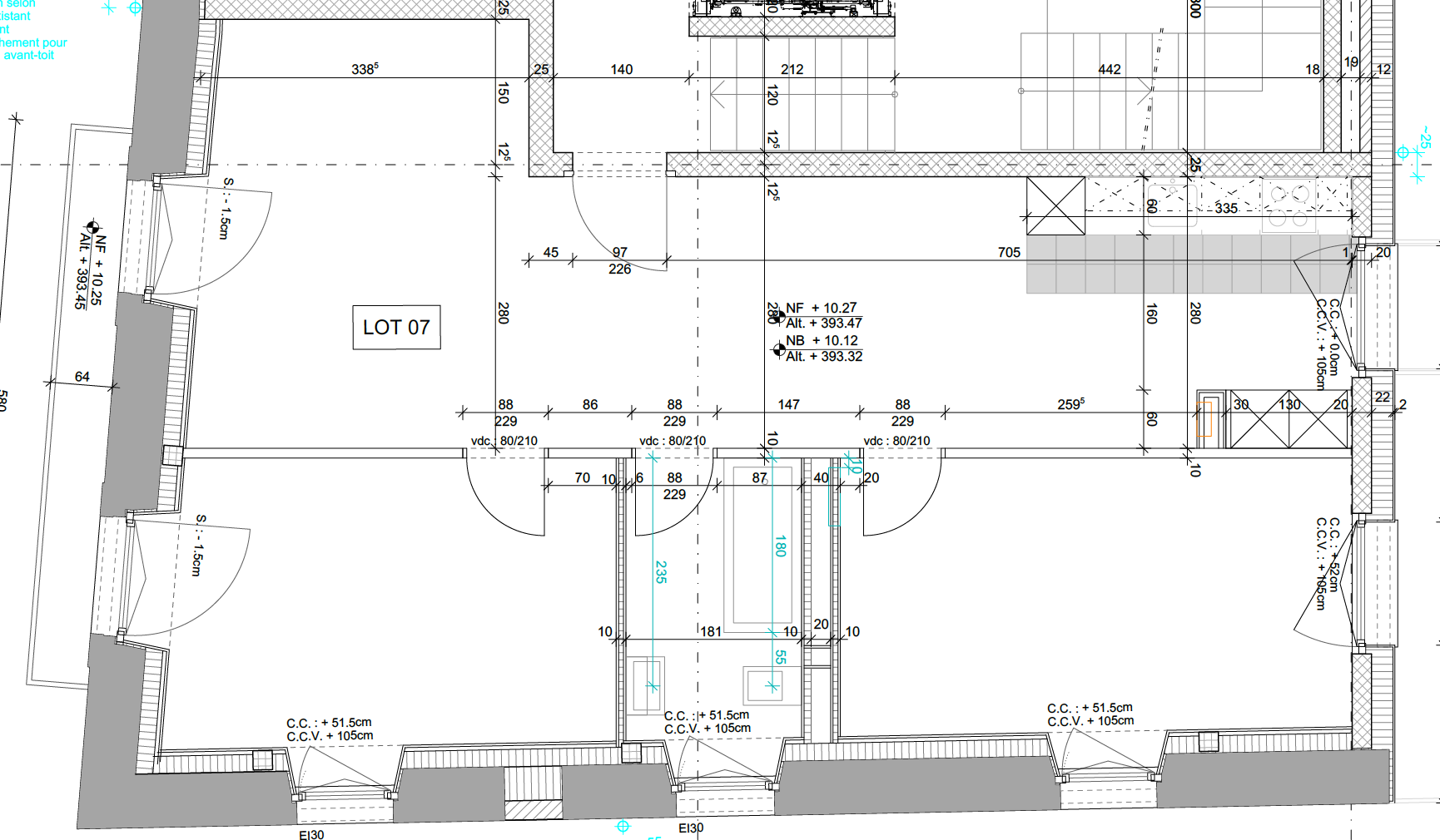 Elle donne à la fois sur la pièce de vie et la cuisine tout en distribuant les chambres et les sanitaires.
